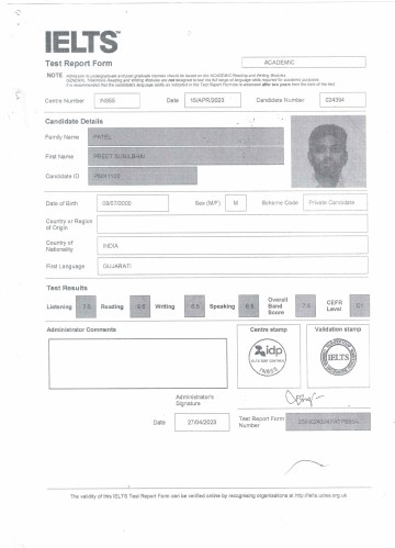 I am thrilled to have received a score of 7.5 on my IELTS exam, which is a significant achievement for me. I would like to express my gratitude to all the staff members at Jay Maharaj and especially the faculties who assisted me in resolving any doubts I had. They always tried innovative methods to help me improve my language skills. I highly recommend Jay Maharaj Edu Focus Pvt Ltd to any student who scored lower bands and struggles with English.