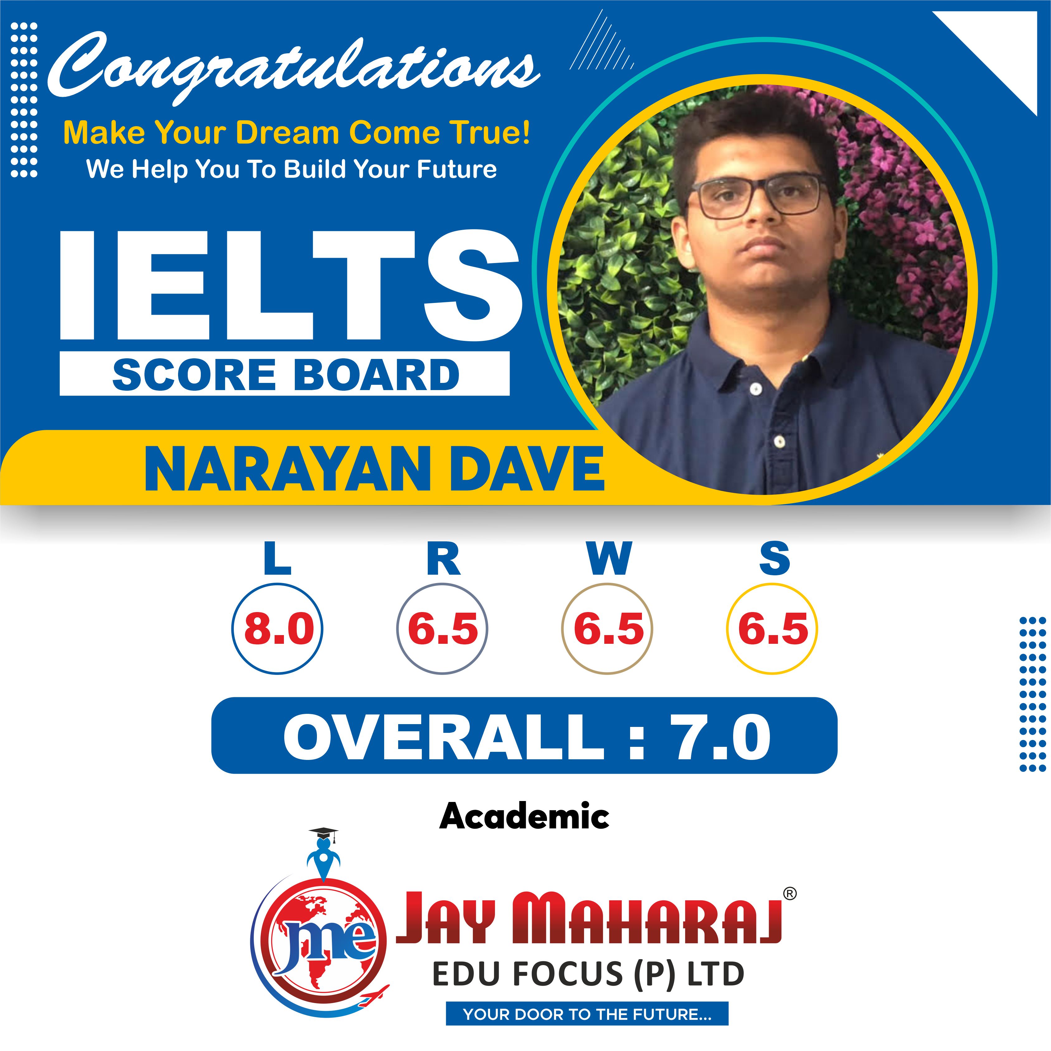 I am so thankful and glad as I got my targeted score in IELTS with the help of JME. The environment is very standard and the faculty over there is very helpful. By their guidance and knowledge I got my goals achieved.